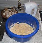 Sobald der ganze Teig bröselig wirkt, kann man ihn mit den Händen weiterbearbeiten und zu einem geschmeidigen Teig verarbeiten.
