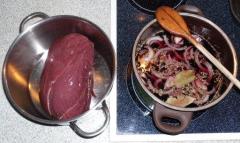 Für Hirschfleisch eignet sich besonders gut eine Rotweinbeize. Das Fleisch sollte auf jeden Fall drei Tage und allerhöchstens zwei Wochen eingelegt bleiben. Während der Beizzeit sollte der Braten täglich gewendet werden.