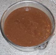 Den Eischnee vorsichtig unter den Schoko-Teig heben. Es sollte eine leichte, fluffige Masse entstehen. Den Teig in eine, mit Backpapier ausgelegte und/oder eingefettete Springform geben.