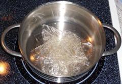 Die Gelatine wird ausgedrückt und bei schwacher Hitze geschmolzen (sie darf auf gar keinen Fall kochen, da sonst die Gelier-Wirkung verloren geht).