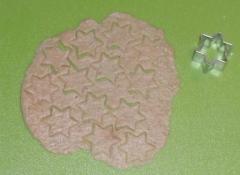 Wenn noch ein Rest von diesem Teig übrigbleibt, kann man ihn ausstechen und noch eine hübsche Dekoration auf den Kuchen verteilen.