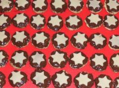 Solange die Schokolade noch feucht ist, wird auf jeden Taler ein Marzipan-Stern gesetzt.
