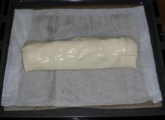 Die Teigrolle mit kaltem Wasser bestreichen.