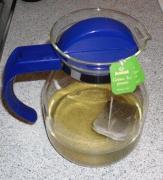 Die Jasminteebeutel lässt man für 8 Minuten in dem kalten Wasser ziehen. Anschließend können sie wieder entfernt werden.
