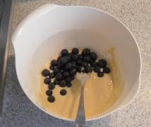 Nach und nach die Milch aufgießen und unter den Teig rühren. Zum Schluss etwa 2/3 der Heidelbeeren unter den Teig heben. Die restlichen Beeren werden später frisch über die Pancakes gegeben.