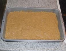 Eine Brownie-Backform mit Butter einreiben. Den Teig gleichmäßig in der Form verteilen.