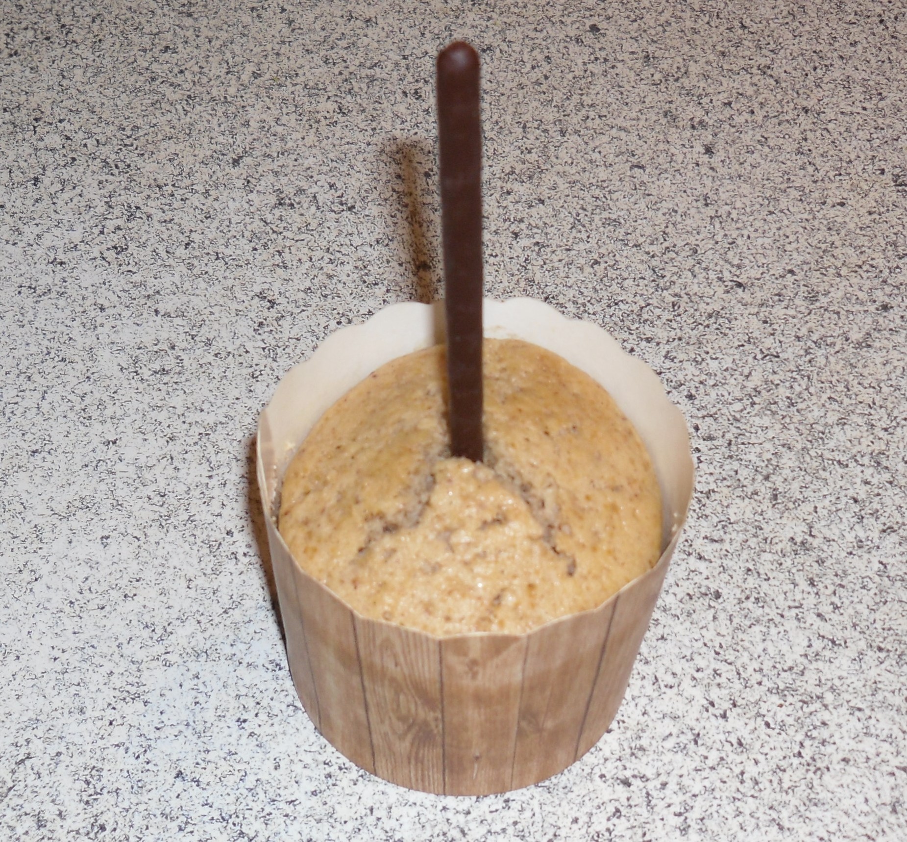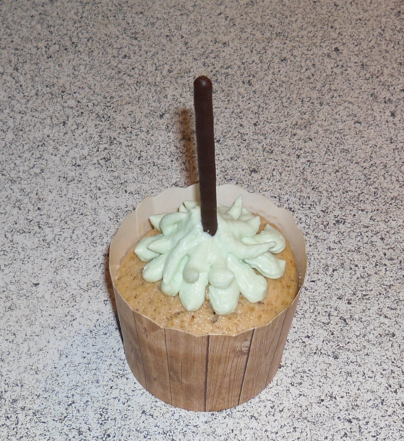 Ich habe dafür immer, wenn ich schöne weihnachtliche Zucker- oder Schokoladen-Dekoration gesehen habe, zugeschlagen. Des Weiteren habe ich diese bezaubernden backfesten Muffin-Formen, die wie Holzkübel aussehen, entdeckt. Sie fassen etwa 70 Milliliter. Wenn man klassische Backförmchen verwendet, dann sollte man die Teigmenge entsprechend reduzieren.