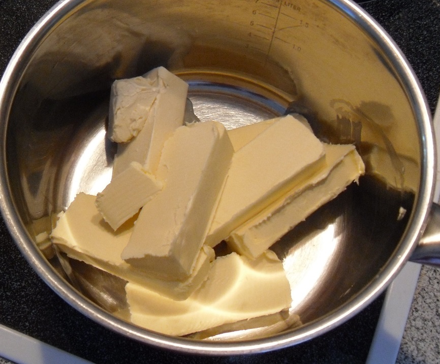 Die Butter in einem Topf bei niedrigster Temperatur langsam schmelzen.