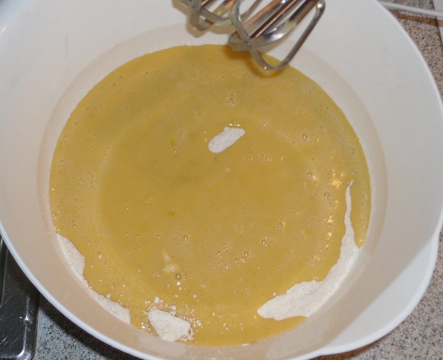 Die Butter-Ei-Mischung zum Mehl gießen und mit dem Rührgerät unterheben.