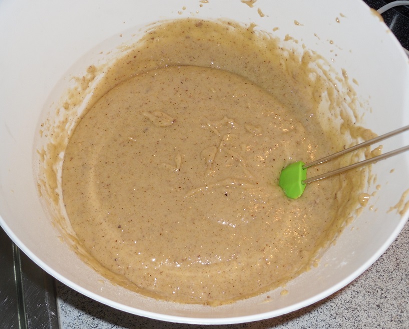 Der Teig ist jetzt noch etwas zäh. Entsprechend den Haferdrink zugießen und noch einmal mit dem Rührgerät vermischen.