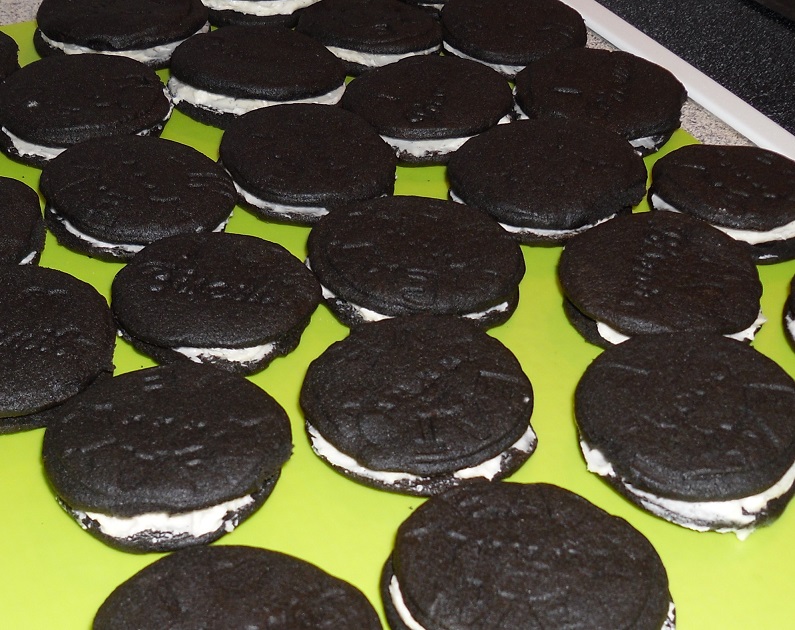 Eigentlich ist die Zubereitung ziemlich einfach: Für den Teig wird ein relativ fetthaltiger Mürbteig zubereitet, der mit Kakao und, wenn vorhanden, schwarzer Lebensmittelfarbe die dunkle Farbe erhält. Für die Füllung wird eine Buttercreme mit einer Vanilleschote hergestellt.