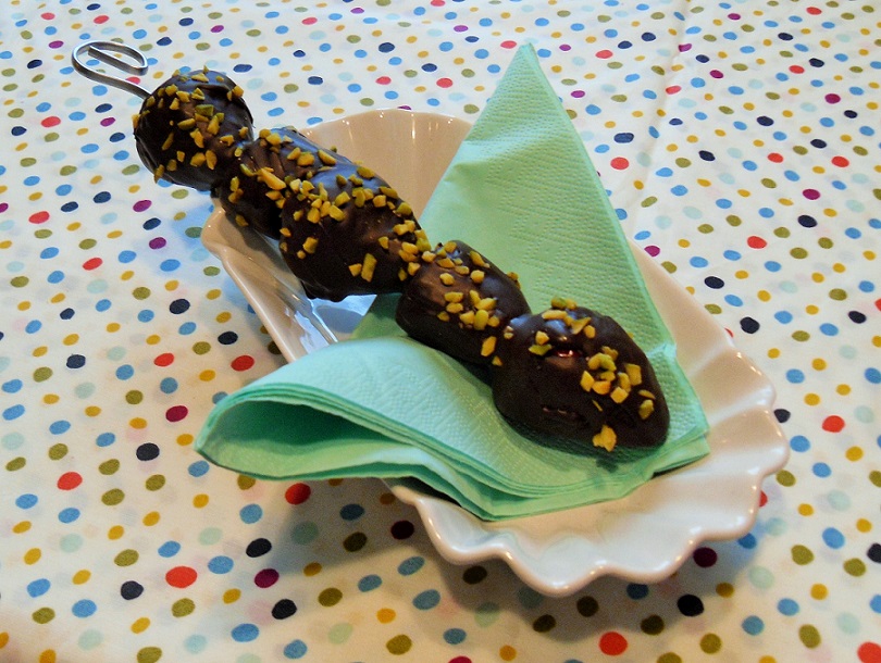 Die Spieße mit der flüssigen Schokolade überziehen.
