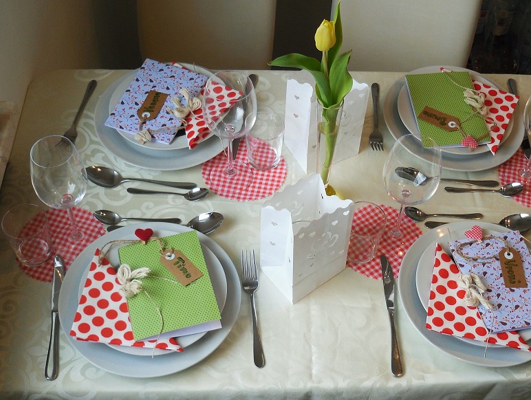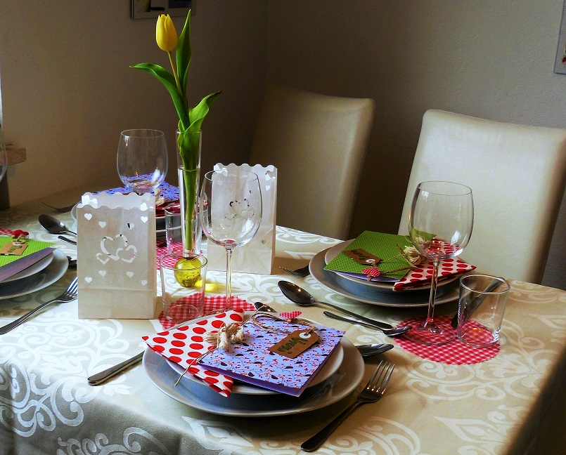 Ansonsten habe ich die Tisch-Dekoration in Rot-Weiß gehalten.