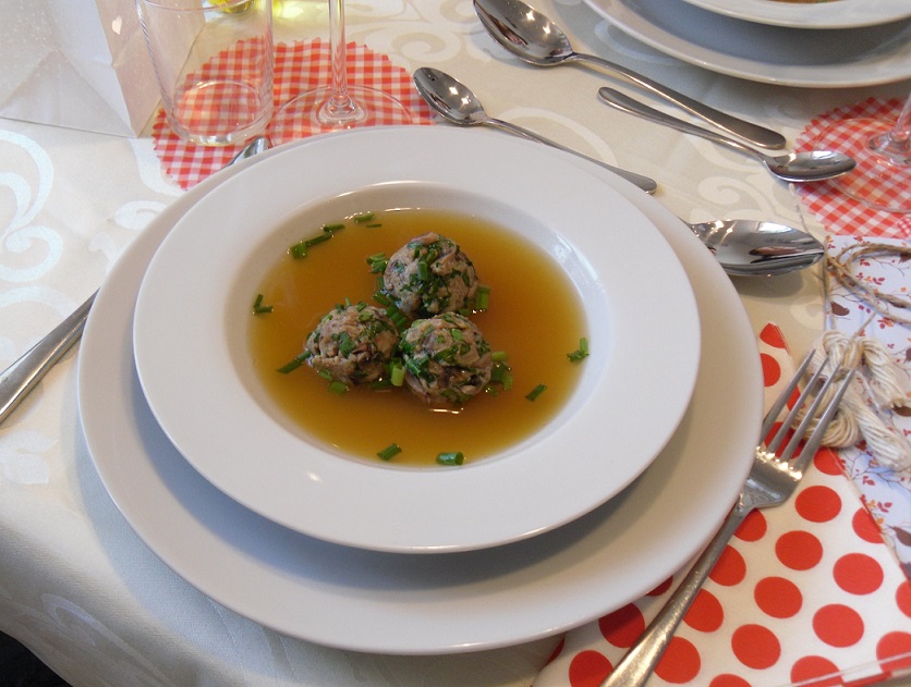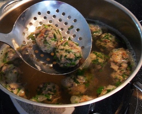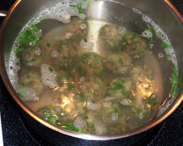 Tipp: Wenn die Klößchen im Kühlschrank waren, dann sollte man sie 2-3 Minuten vor dem Servieren in die heiße, nicht mehr kochende Brühe geben und noch einmal kurz ziehen lassen.