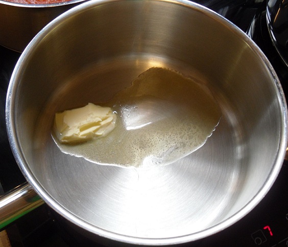 Pflanzen-Margarine in einem Topf zergehen lassen.