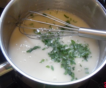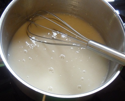 Mit einem Schneebesen weiterrühren, so dass keine Klümpchen entstehen.