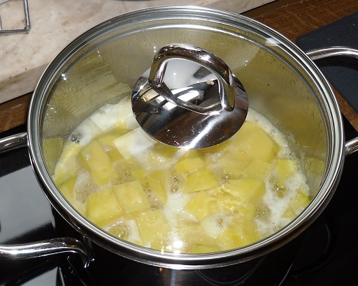 Das restliche Wasser hinzugeben und alles aufkochen lassen.