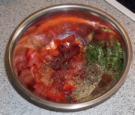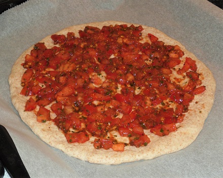 Wie man die Pizza schlussendlich belegt, sei jedem selbst überlassen. Ich habe für die Sauce frische Tomaten verwendet. Hier kann man aber auch fertige Pizza-Tomaten nehmen.