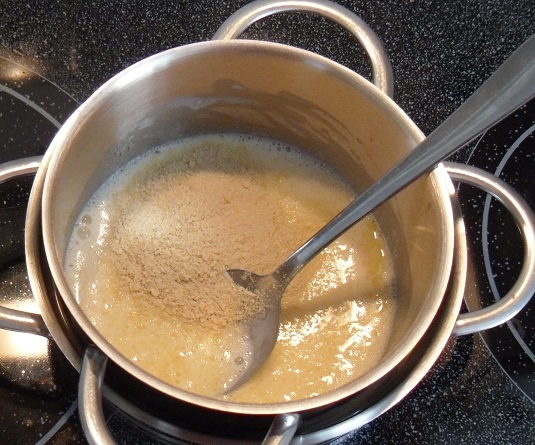 Eine Mischung aus Sojacreme, Margarine und Hefeflocken.