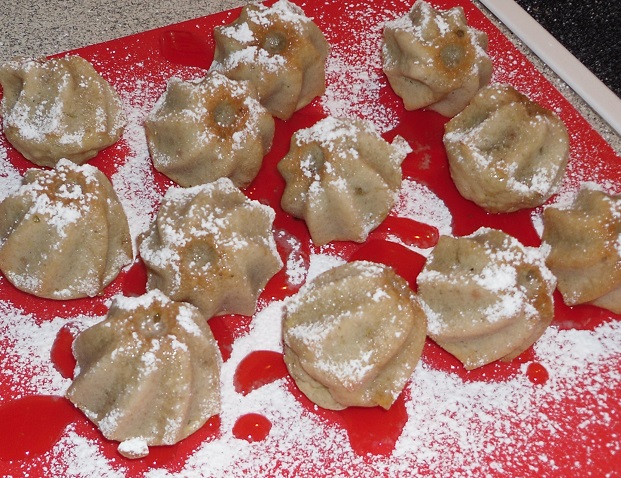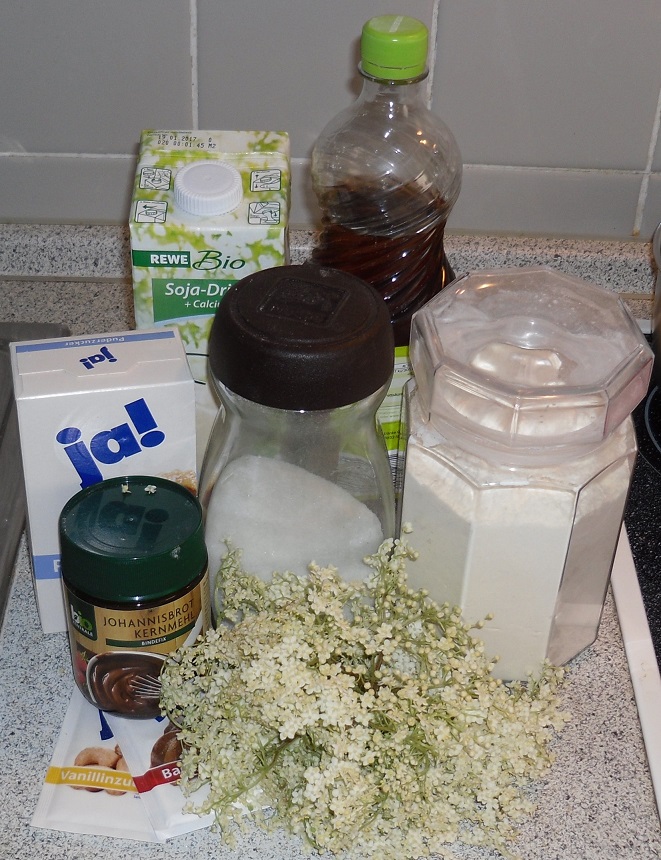 Da ich noch einige Blüten übrig hatte und noch eine leckere Kleinigkeit zubereiten wollte, habe ich noch kleine Holunderküchlein in Guglhupf-Form gebacken.