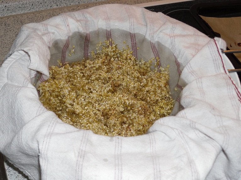 Den Sirup durch ein, mit einem sauberen Geschirrtuch ausgelegtes Sieb gießen und komplett abtropfen lassen.