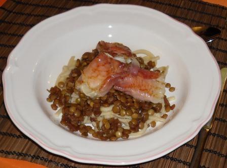Linsen mit Ziegenkäse im Speckmantel
