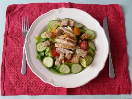 Salat mit Hähnchenbrust und Parmesan-Croûtons
