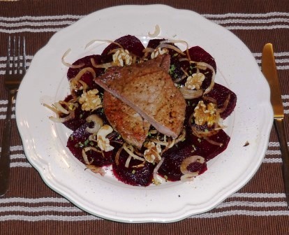 Rote Beete ist bekannt für seine ausgesprochen intensive rote Farbe. Bei der Verarbeitung empfiehlt es sich Haushalts-Handschuhe zu tragen, damit nicht Haut und Fingernägel eingefärbt werden. Für das Carpaccio eignet sich die geschälte, vorgegarte und eingeschweißte Rote Beete. Zutaten für 2 Portionen: 2 Rindersteaks 1 Zwiebel 3 rote Beete-Wurzeln 2 EL geschälte Walnüsse 1-2 EL... Continue Reading →