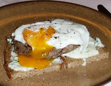 Steakbrot mit pochiertem Ei