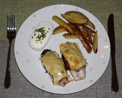 Chicorée im Schinkenmantel mit Kartoffelspalten