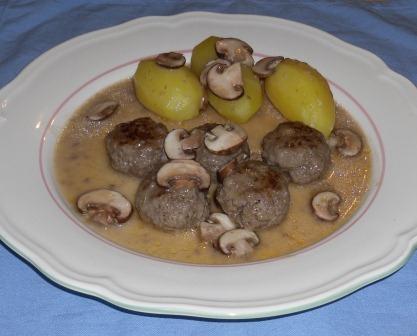 Hackbällchen Stroganoff mit Salzkartöffelchen