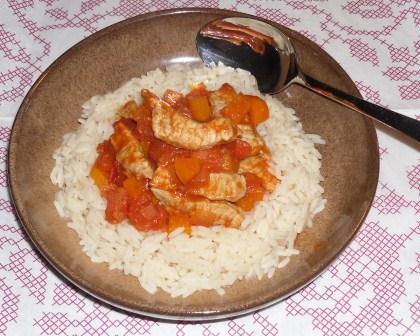 Hühnerfrikassee auf Reis