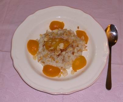 Veganer Mandelmilchreis mit warmen Aprikosen