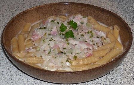 Vollkornnudeln mit Käse-Speck-Soße